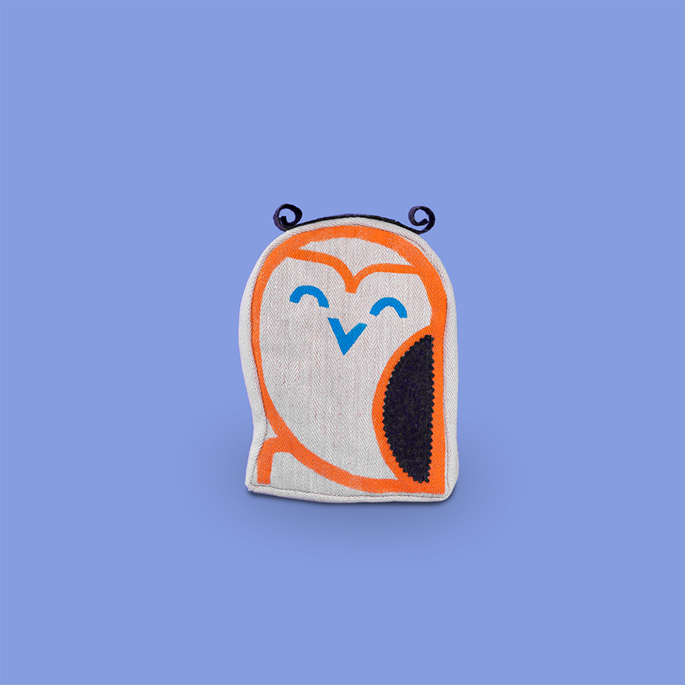 Deze handgemaakte uilen knuffel is helemaal duurzaam en bevat 0% plastic. Ideaal voor in de wieg. Gemaakt van hennepstof met hennepvulling, bedrukt met textiel verf/ stempelinkt. Ook de verf is veilig en zeer milieuvriendelijk. 20 hoog en 15 breed. De veren zijn gemaakt van wol.