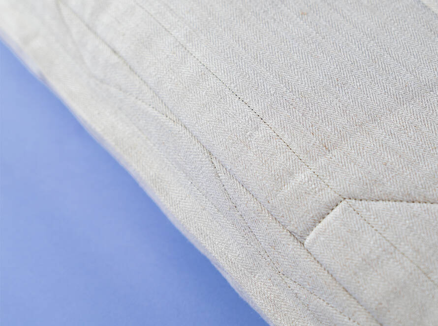• Een hoes van hennepstof doorgestikt in patroon op wol met rits.